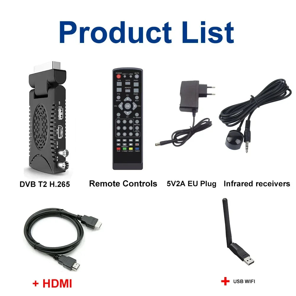 Receptor TDT Digital DVB-T2 HD - Decodificador HEVC com HDMI, SCART e Wi-Fi USB